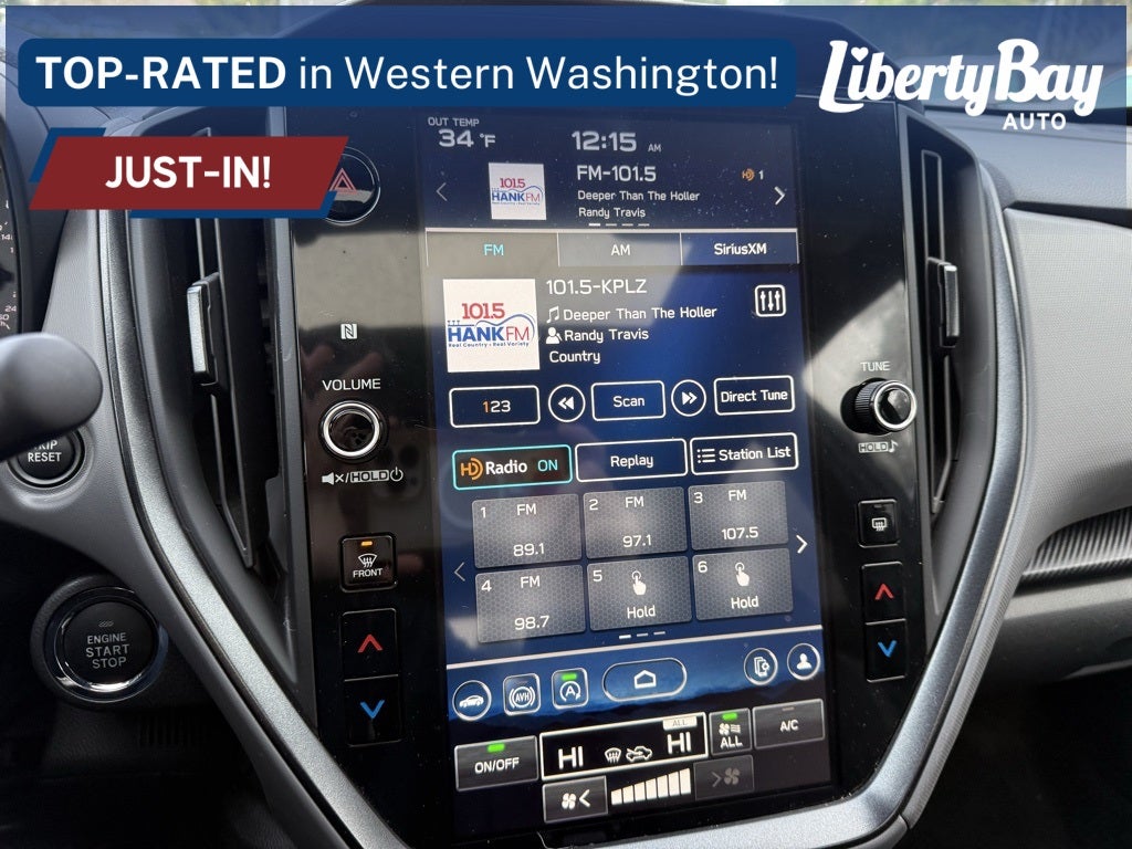 - Radio: Subaru STARLINK 11.6" Multimedia Plus Sys -inc: AM/FM stereo, HD Radio, multi-touch gesture high resolution display screen, voice activated controls, Bluetooth® audio streaming and hands-free phone connectivity, Bluetooth® hands-free SMS text messaging connectivity, iPod control capability, SiriusXM All Access Radio (4 months free trial included/subscription required after), SiriusXM Travel Link (4 months free trial included/subscription required after), smartphone integration: Android Auto and Apple CarPlay w/full screen view and wireless connection, USB and Over The Air (OTA) audio system update, steering wheel audio system and Bluetooth® control switches, 6 speakers (2 dash panel tweeter, 2 front door and 2 rear door), illuminated 3.5mm auxiliary input jack, illuminated front USB A and C input/charge ports and illuminated rear USB A and C charge ports