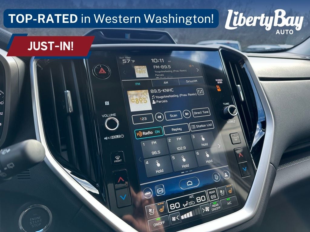 - Radio: Subaru 11.6" Multimedia System w/Navigation -inc: AM/FM stereo HD Radio, multi-touch gesture high resolution display screen, voice activated controls for radio and navigation, Bluetooth® audio streaming and hands-free phone connectivity w/SMS text messaging connectivity (refer to subaru.com for cell phone compatibility), Near Field Communication (NFC), TomTom navigation software w/what3words, iPod control capability, smartphone integration for Android Auto and Apple CarPlay w/full screen view and wireless connection, USB audio system update, TomTom navigation system update w/USB/Map Over The Air (MOTA) (3 years free map updates), steering wheel control switches for audio and Bluetooth®, harman/kardon quantum logic surround sound speaker system w/14 speakers, subwoofer and harman/kardon 792 watt equivalent maximum output amplifier, 3.5mm illuminated auxiliary input jack, illuminated USB A and C input/charge ports, SiriusXM w/360L (4 months free trial included/subscription required after), SiriusXM Travel Link (4 months free trial included/subscription required after) and SiriusXM Traffic (3 years free trial included/subscription required after)